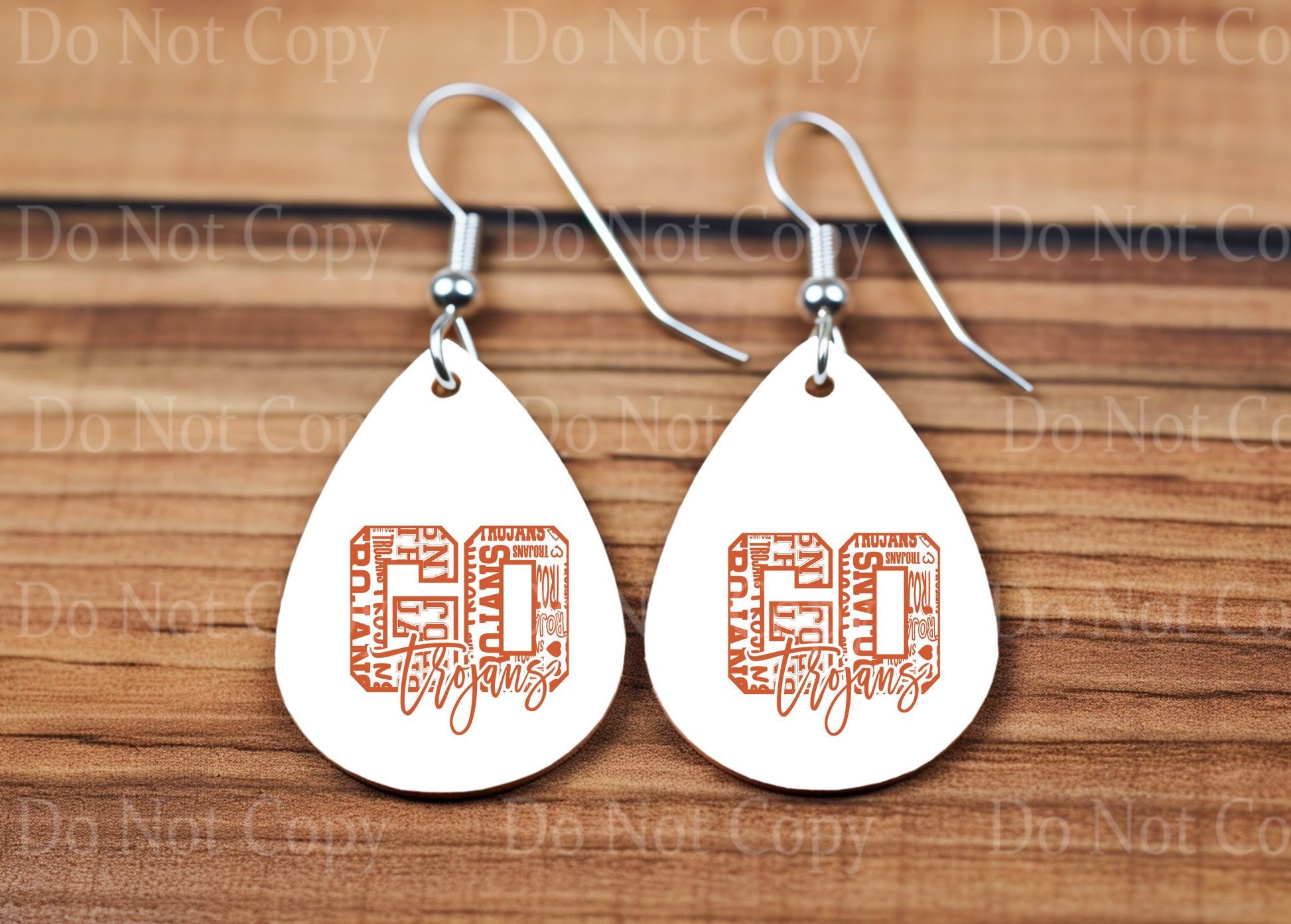 Cheer on your team in style with our Go Trojans Orange Typography Earrings! Made with vibrant orange typography, these earrings are the perfect accessory for any Trojans fan. Show your school spirit and add some fun to any outfit with these quirky and playful earrings. Fight on!