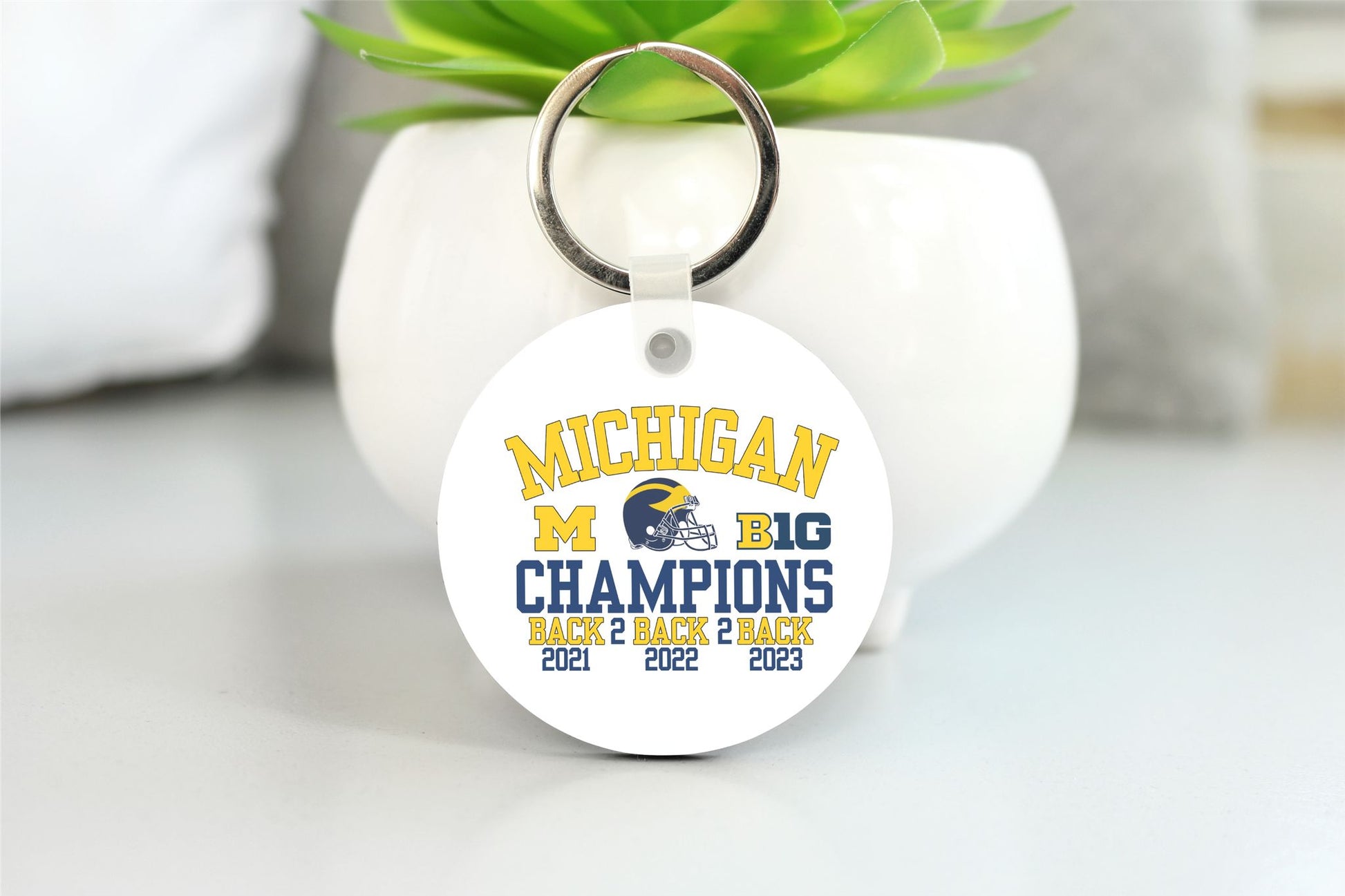 Keep your keys close and show off your love for the Michigan Wolverines with our Football 2023 Back to Back champions keychain. Perfect for any die-hard fan, this keychain will keep your keys secure while also celebrating your team's victories. Go Blue!