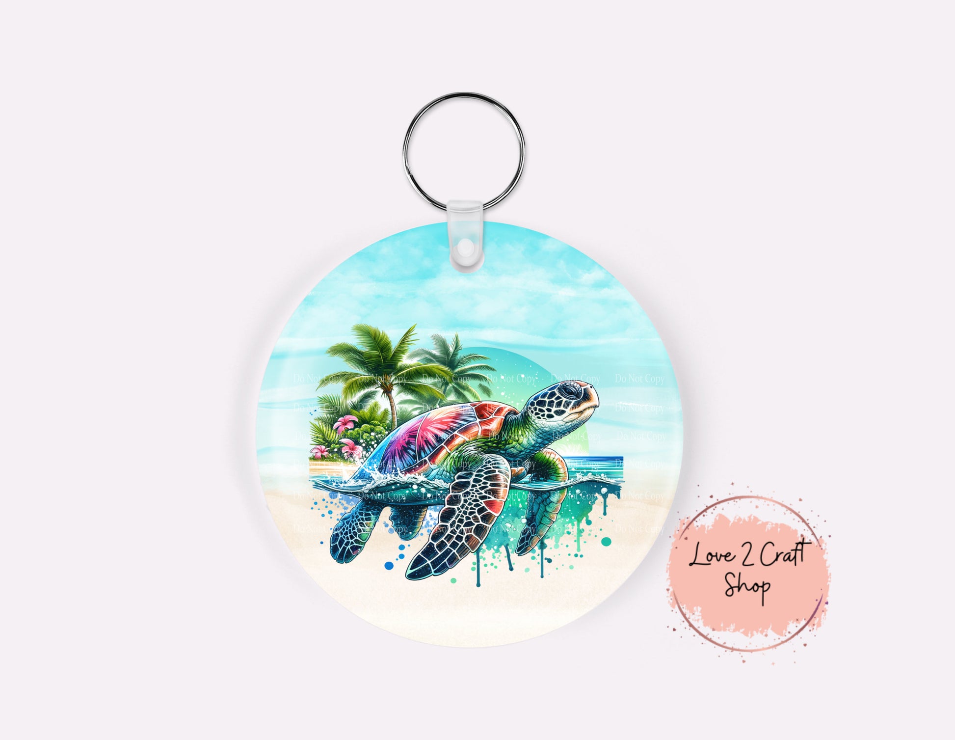 Watercolor vibrant Sea Turtle Acrylic Key chain